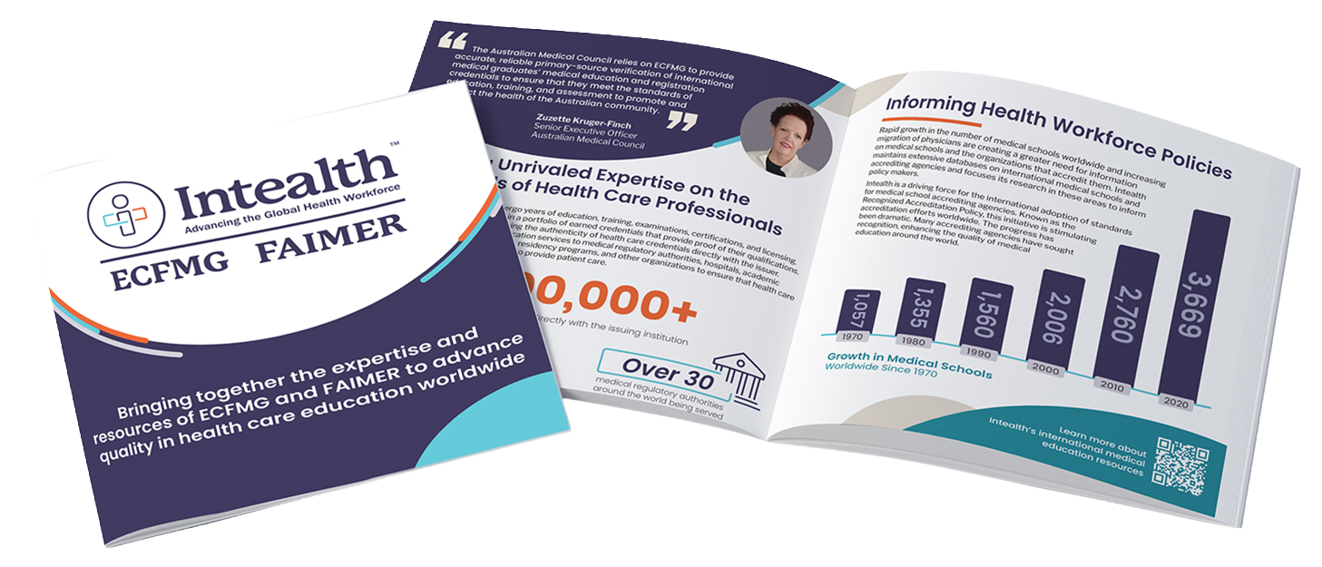 Built a Unified Brand System: Created and rolled out a detailed brand style guide covering logos, typography, imagery, and voice. Art Directed and project managed a definitive company overview brochure giving a high level overview of Intealth and it’s divisions, ECFMG and FAIMER. Launched a new website for Intealth.