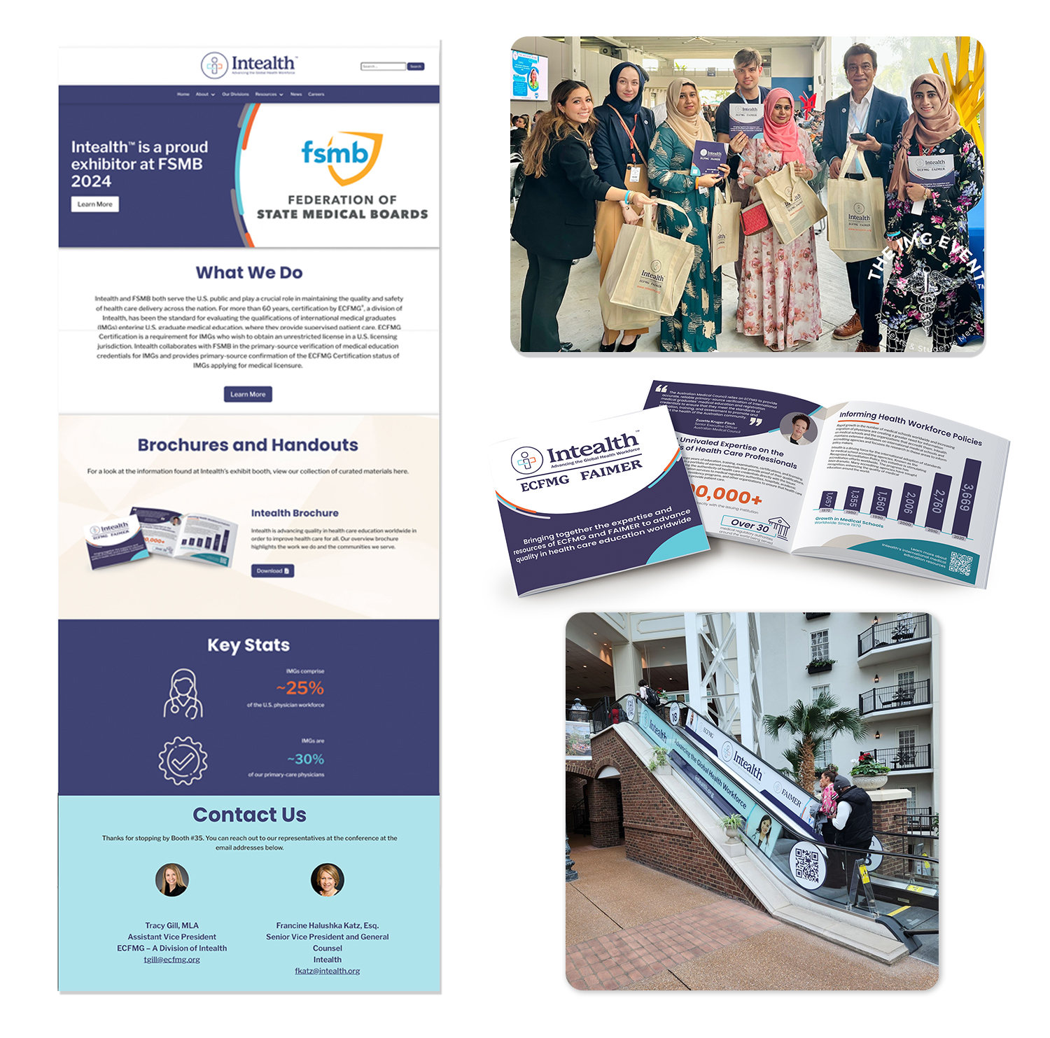 Upon landing at Intealth, I identified a serious need for digital transformation, particularly in the events realm. I had several key initiatives: Placing emphasis on Google Analytics when making any digital decisions. Replace wasted paper collateral at conferences with custom landing pages that attendees could access via-QR code at the tables. Develop a digital AND printed overview brochure to explain the intersection of our 3 brands, Intealth, ECFMG and FAIMER. Consolidate the 3 brand social media channels. Expand our usage of social media to spread the brand and attract influencers. And finally, invest in branded sponsorships at large scale conferences.