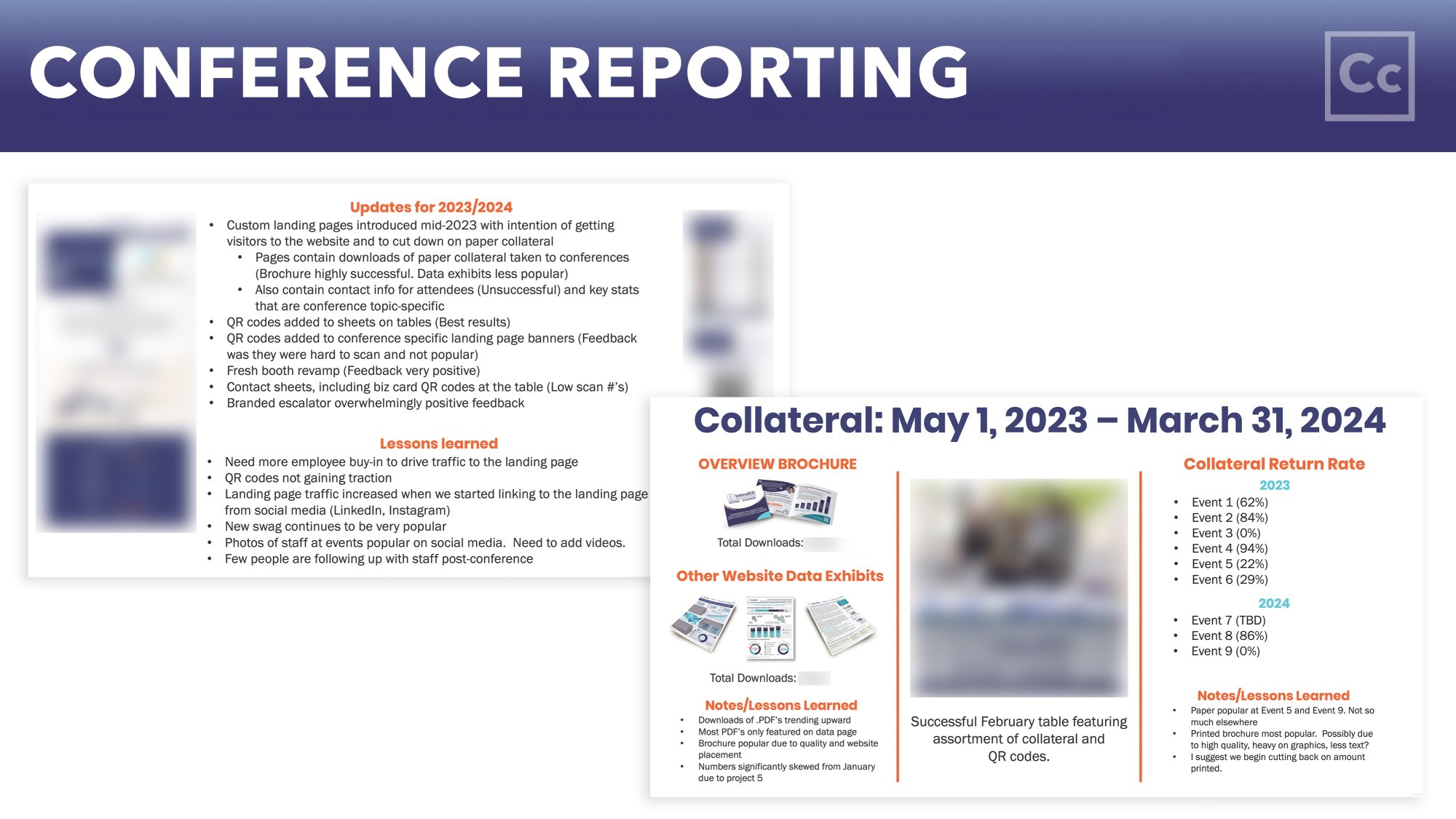 As a brand director, I prioritized creating a significant digital transformation plan for not only our website but also our conference strategy. Conferences are a significant investment for any company but how do you measure ROI? We were taking a lot of printed out data sheets and once I studied the return rates, I made the case to pivot to custom landing pages that included the same data sheets that were being printed but in digital form. I also included a contact us form, some key statistics for the particular conference and other conference specific content. We were finally able to track which content people cared about through downloads and QR codes.