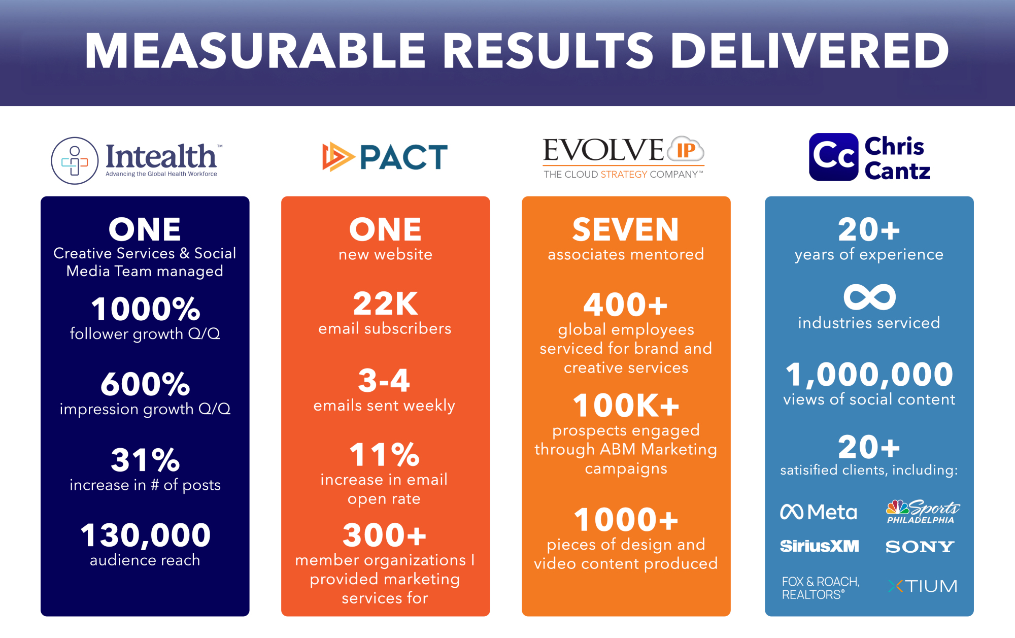 As they say, the proof is in the pudding. I have made a career out of providing measurable growth. The numbers don't lie.