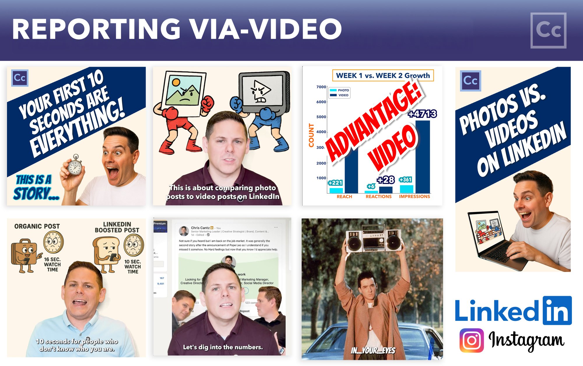 Upon hitting the job market, I created a video series for LinkedIn and Instagram announcing my availability and also providing insights into my job search. Does posting photos or videos generate more attention on LinkedIn? (videos) Is it worth a paid campaign to boost a video? (not in my case) How are Instagram Reels for gathering attention? (better than carousel posts). I documented the statistical journey via-self-produced videos. This was a good, short, interactive way to deliver results to people (and make them laugh occasionally).